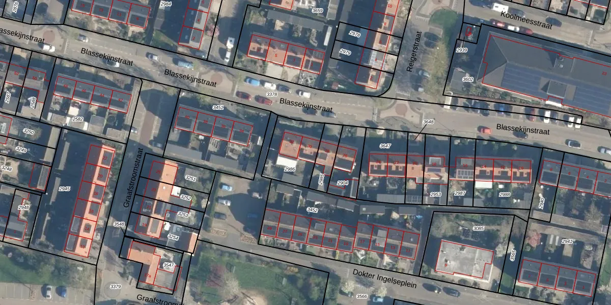 Blassekijnstraat 30 is gelegen op kadastraal perceel BKG00A2986. Deze kadastrale aanduiding is uniek en wordt gebruikt door het Kadaster om eigendomsrechten en andere zakelijke rechten vast te leggen. Het perceel maakt onderdeel uit van de kadastrale gemeente Bleskensgraaf.