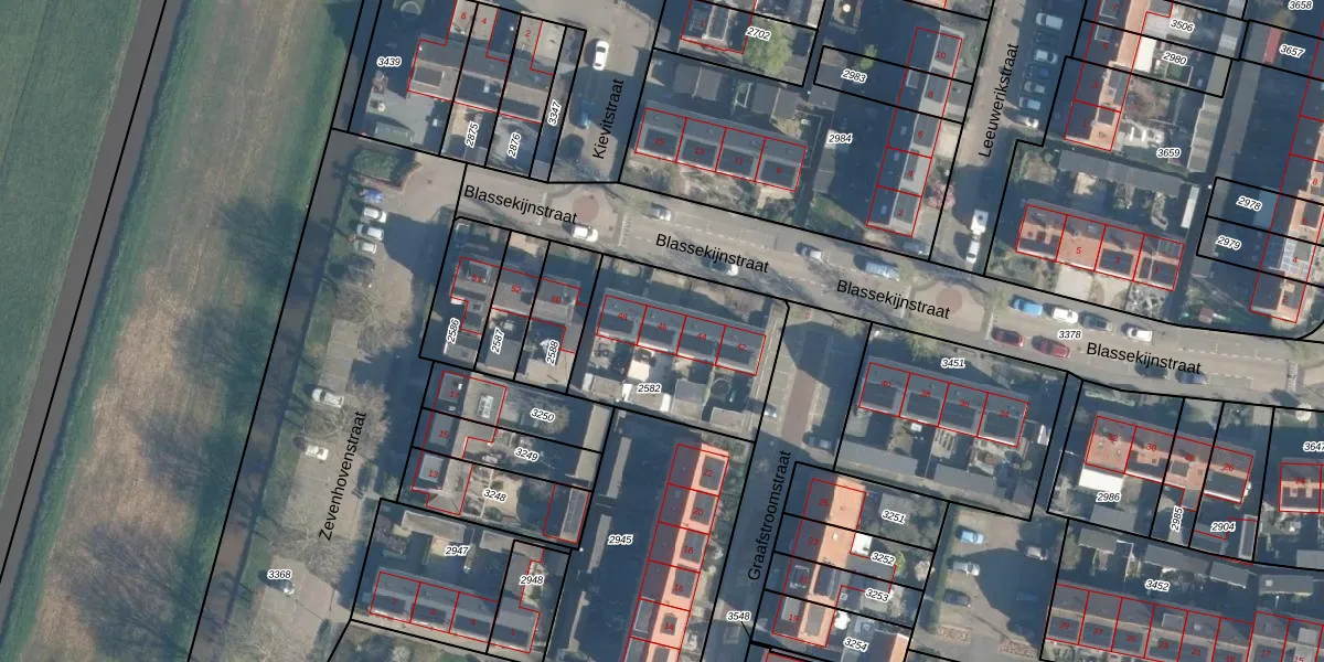 Het perceel waarop Blassekijnstraat 46 staat heeft een oppervlakte van 646 m². Dit is een groot perceel. De perceeloppervlakte wordt geregistreerd door het Kadaster. Gedetailleerde informatie over de maten van dit perceel kunt u vinden in het rapport Kadastrale kaart met maatvoering van Blassekijnstraat 46.