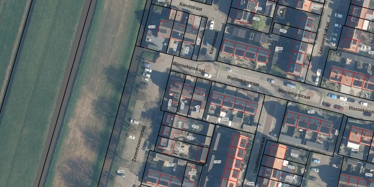 Gebruik de zoekbalk of klik op een perceel voor informatie over de adressen binnen dit perceel.