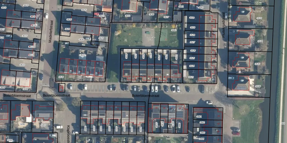 Boterbloemstraat 24 is gelegen op kadastraal perceel BKG00A3518. Deze kadastrale aanduiding is uniek en wordt gebruikt door het Kadaster om eigendomsrechten en andere zakelijke rechten vast te leggen. Het perceel maakt onderdeel uit van de kadastrale gemeente Bleskensgraaf.