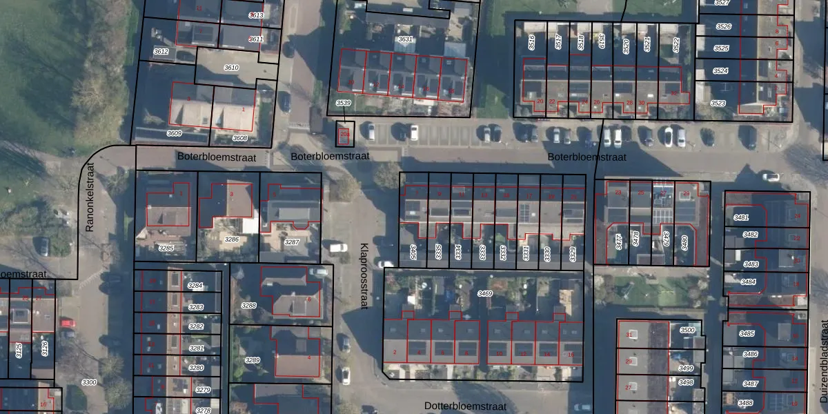 Het perceel waarop Boterbloemstraat 7 staat heeft een oppervlakte van 160 m². Dit is een middelgroot perceel. De perceeloppervlakte wordt geregistreerd door het Kadaster. Gedetailleerde informatie over de maten van dit perceel kunt u vinden in het rapport Kadastrale kaart met maatvoering van Boterbloemstraat 7.
