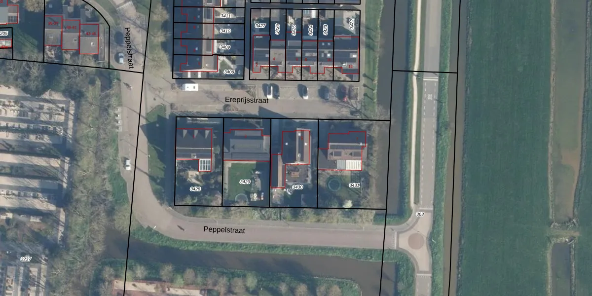 Het perceel waarop Ereprijsstraat 5 staat heeft een oppervlakte van 480 m². Dit is een groot perceel. De perceeloppervlakte wordt geregistreerd door het Kadaster. Gedetailleerde informatie over de maten van dit perceel kunt u vinden in het rapport Kadastrale kaart met maatvoering van Ereprijsstraat 5.