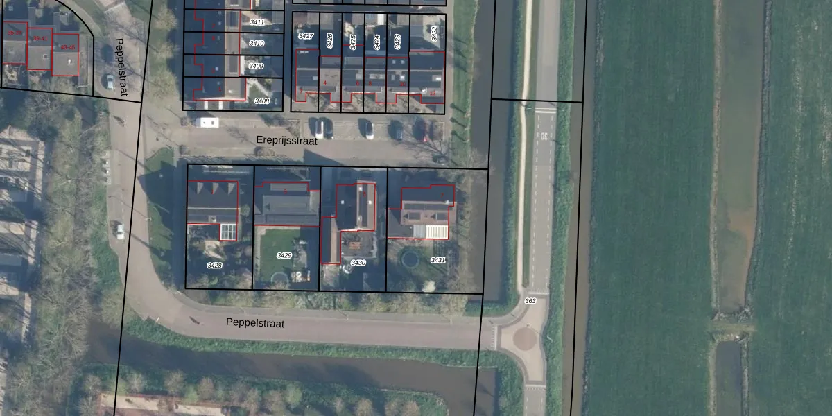 Gebruik de zoekbalk of klik op een perceel voor informatie over de adressen binnen dit perceel.