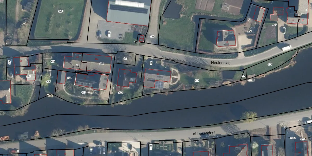 Heulenslag 13 is gelegen op kadastraal perceel BKG00D322. Deze kadastrale aanduiding is uniek en wordt gebruikt door het Kadaster om eigendomsrechten en andere zakelijke rechten vast te leggen. Het perceel maakt onderdeel uit van de kadastrale gemeente Bleskensgraaf.