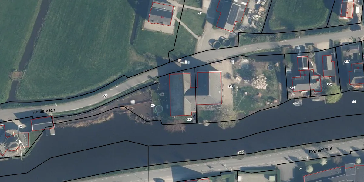 Heulenslag 2 is gelegen op kadastraal perceel BKG00D59. Deze kadastrale aanduiding is uniek en wordt gebruikt door het Kadaster om eigendomsrechten en andere zakelijke rechten vast te leggen. Het perceel maakt onderdeel uit van de kadastrale gemeente Bleskensgraaf.