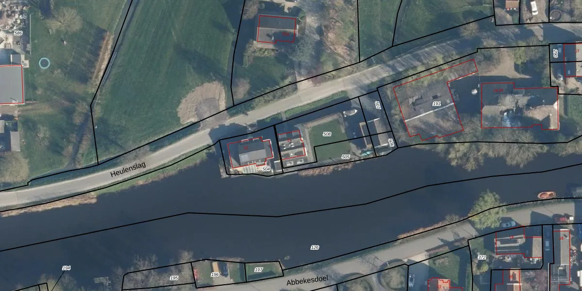 Heulenslag 21 is gelegen op kadastraal perceel BKG00D508. Deze kadastrale aanduiding is uniek en wordt gebruikt door het Kadaster om eigendomsrechten en andere zakelijke rechten vast te leggen. Het perceel maakt onderdeel uit van de kadastrale gemeente Bleskensgraaf.