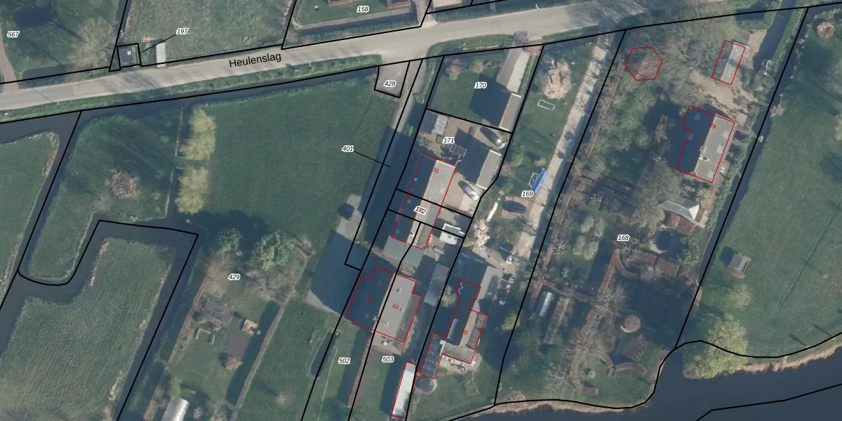 Heulenslag 32 is gelegen op kadastraal perceel BKG00D172. Deze kadastrale aanduiding is uniek en wordt gebruikt door het Kadaster om eigendomsrechten en andere zakelijke rechten vast te leggen. Het perceel maakt onderdeel uit van de kadastrale gemeente Bleskensgraaf.