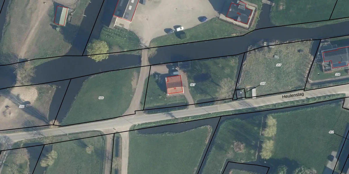 Heulenslag 36 is gelegen op kadastraal perceel BKG00D567. Deze kadastrale aanduiding is uniek en wordt gebruikt door het Kadaster om eigendomsrechten en andere zakelijke rechten vast te leggen. Het perceel maakt onderdeel uit van de kadastrale gemeente Bleskensgraaf.