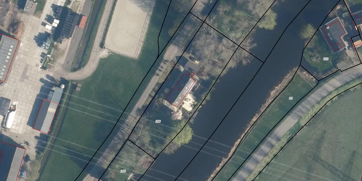 Het adres ligt op het perceel BKG00-D-266, dat zich in de kadastrale gemeente Bleskensgraaf bevindt. Het perceel is 1735 m² groot. Dat is kleiner dan de gemiddelde perceeloppervlakte in Bleskensgraaf, dat op 7238,27 m² ligt. De grootste perceeloppervlakte in de kadastrale gemeente is 18,2 ha. De kleinste oppervlakte bedraagt 0 m². Dit is het enige adres dat aanwezig is op het perceel. In de Basisregistratie Kadaster (BRK) werden de grenzen van het perceel geregistreerd op 16-09-1999.