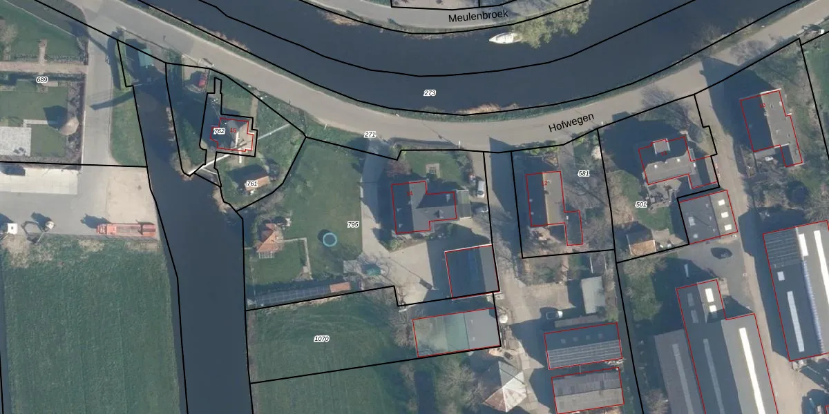 Het perceel waarop Hofwegen 14 staat heeft een oppervlakte van 2025 m². Dit is een zeer groot perceel. De perceeloppervlakte wordt geregistreerd door het Kadaster. Gedetailleerde informatie over de maten van dit perceel kunt u vinden in het rapport Kadastrale kaart met maatvoering van Hofwegen 14.