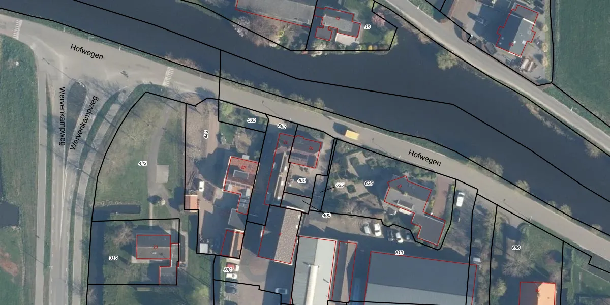 Hofwegen 20 is gelegen op kadastraal perceel BKG00E401. Deze kadastrale aanduiding is uniek en wordt gebruikt door het Kadaster om eigendomsrechten en andere zakelijke rechten vast te leggen. Het perceel maakt onderdeel uit van de kadastrale gemeente Bleskensgraaf.