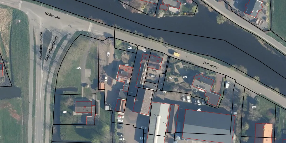Hofwegen 21 is gelegen op kadastraal perceel BKG00E593. Deze kadastrale aanduiding is uniek en wordt gebruikt door het Kadaster om eigendomsrechten en andere zakelijke rechten vast te leggen. Het perceel maakt onderdeel uit van de kadastrale gemeente Bleskensgraaf.