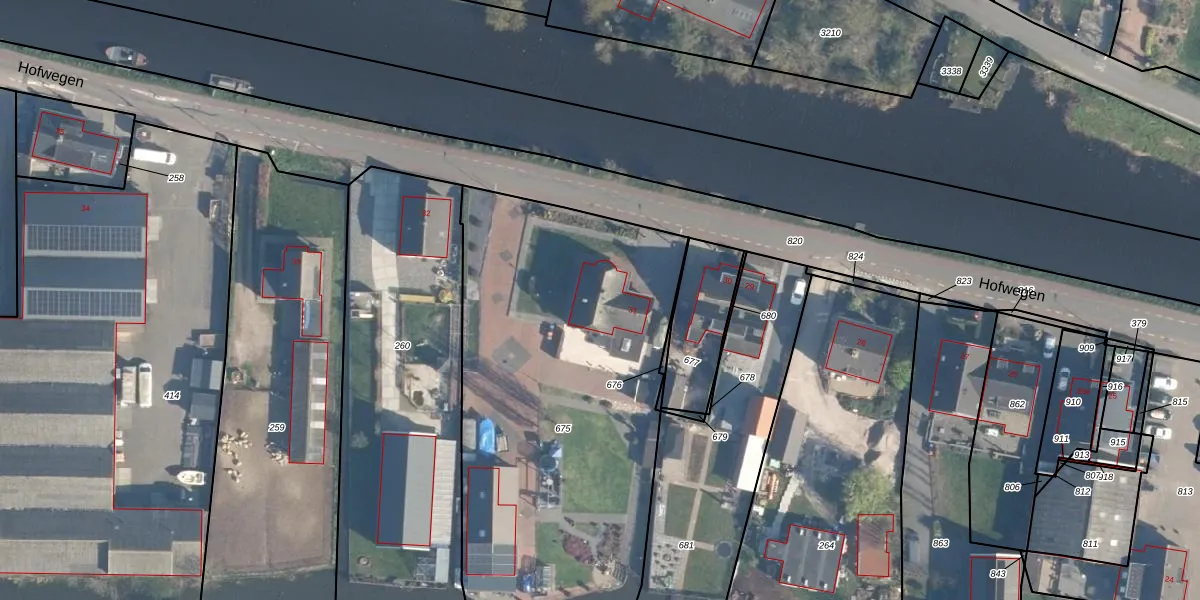 Het perceel waarop Hofwegen 31 staat heeft een oppervlakte van 2201 m². Dit is een zeer groot perceel. De perceeloppervlakte wordt geregistreerd door het Kadaster. Gedetailleerde informatie over de maten van dit perceel kunt u vinden in het rapport Kadastrale kaart met maatvoering van Hofwegen 31.