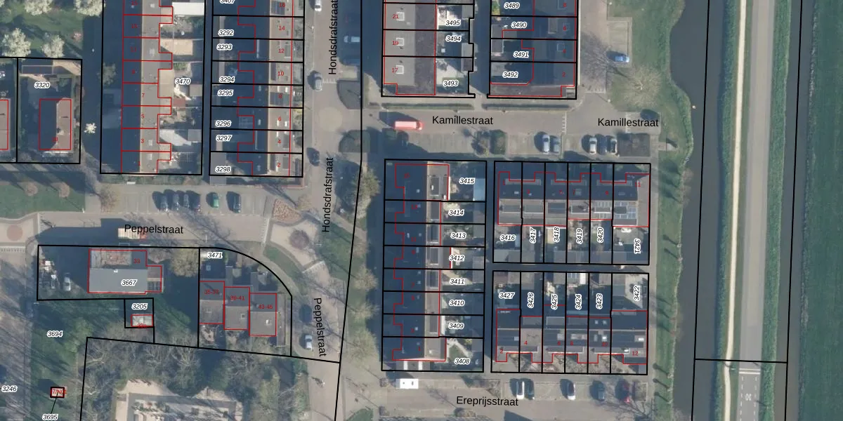Hondsdrafstraat 13 is gelegen op kadastraal perceel BKG00A3414. Deze kadastrale aanduiding is uniek en wordt gebruikt door het Kadaster om eigendomsrechten en andere zakelijke rechten vast te leggen. Het perceel maakt onderdeel uit van de kadastrale gemeente Bleskensgraaf.