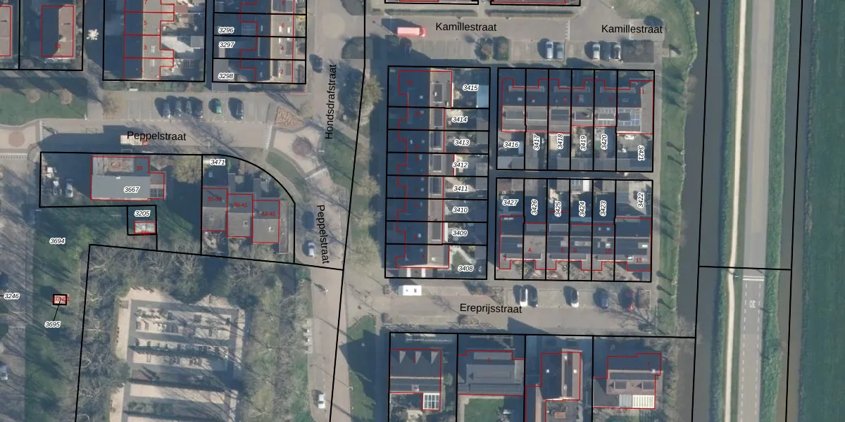 Gebruik de zoekbalk of klik op een perceel voor informatie over de adressen binnen dit perceel.