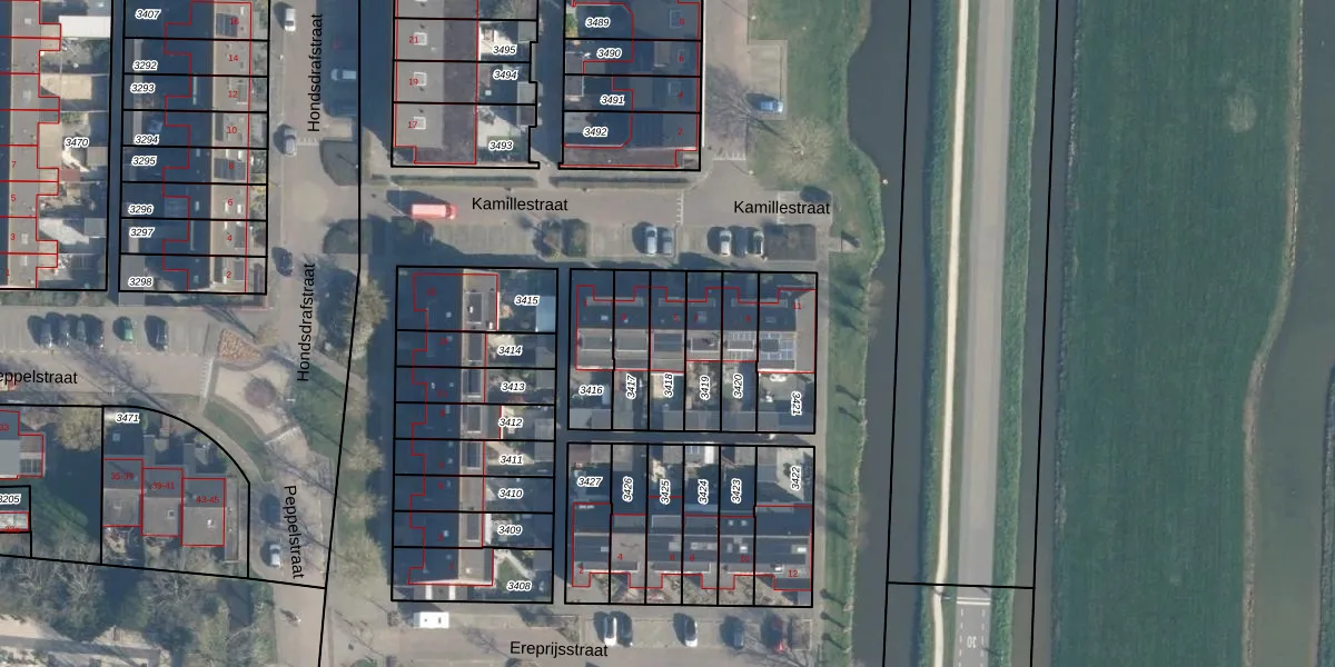 Kamillestraat 5 is gelegen op kadastraal perceel BKG00A3418. Deze kadastrale aanduiding is uniek en wordt gebruikt door het Kadaster om eigendomsrechten en andere zakelijke rechten vast te leggen. Het perceel maakt onderdeel uit van de kadastrale gemeente Bleskensgraaf.