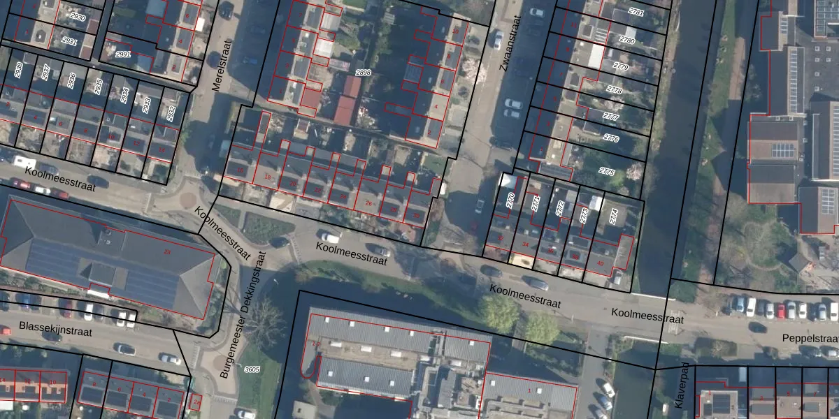 Het perceel waarop Koolmeesstraat 30 staat heeft een oppervlakte van 2819 m². Dit is een zeer groot perceel. De perceeloppervlakte wordt geregistreerd door het Kadaster. Gedetailleerde informatie over de maten van dit perceel kunt u vinden in het rapport Kadastrale kaart met maatvoering van Koolmeesstraat 30.