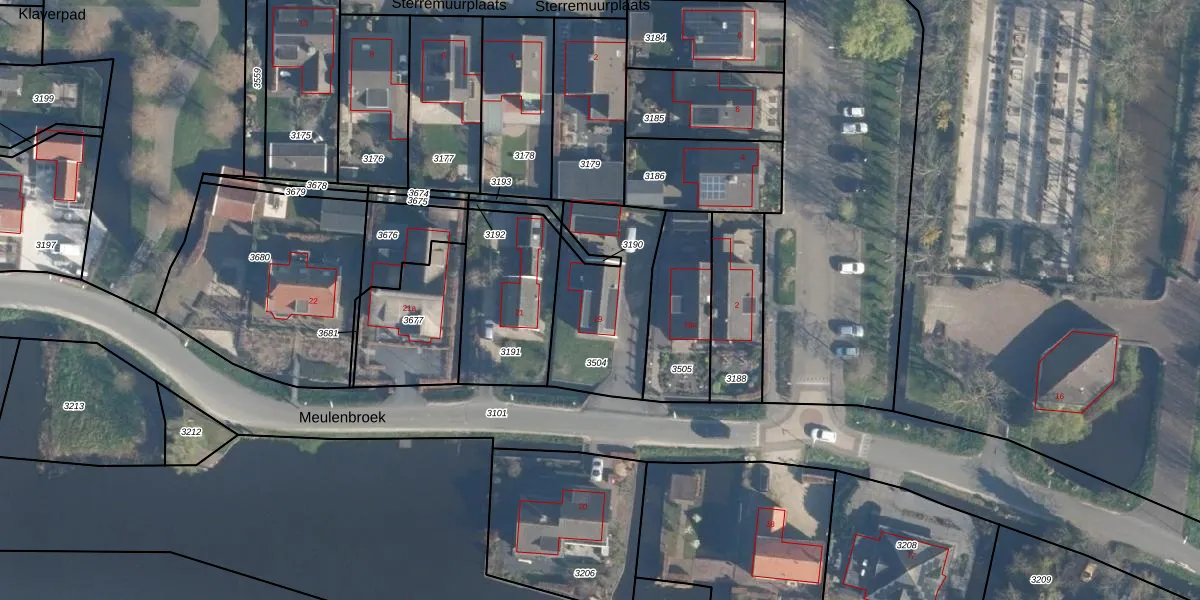 Het perceel waarop Meulenbroek 19 staat heeft een oppervlakte van 492 m². Dit is een groot perceel. De perceeloppervlakte wordt geregistreerd door het Kadaster. Gedetailleerde informatie over de maten van dit perceel kunt u vinden in het rapport Kadastrale kaart met maatvoering van Meulenbroek 19.