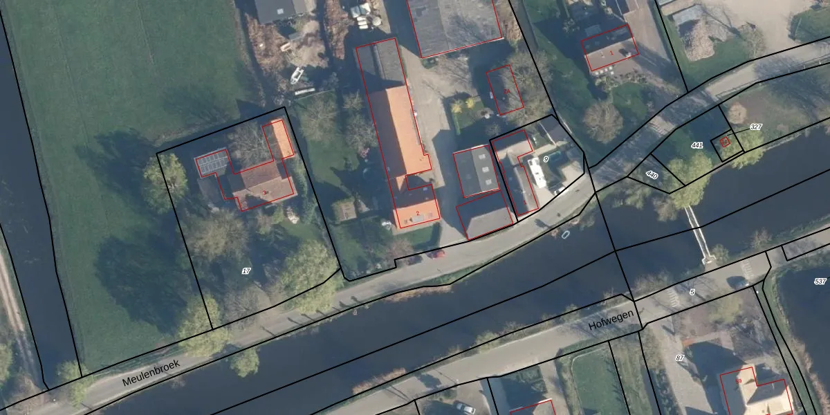 Het perceel waarop Meulenbroek 2 staat heeft een oppervlakte van 3,0 ha. Dit is een zeer groot perceel. De perceeloppervlakte wordt geregistreerd door het Kadaster. Gedetailleerde informatie over de maten van dit perceel kunt u vinden in het rapport Kadastrale kaart met maatvoering van Meulenbroek 2.