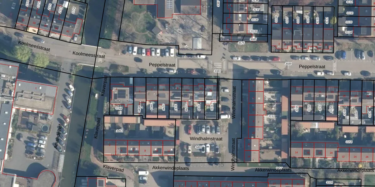 Gebruik de zoekbalk of klik op een perceel voor informatie over de adressen binnen dit perceel.