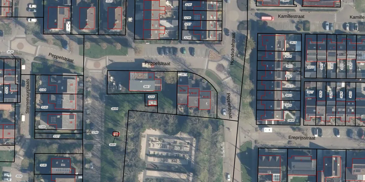 Het perceel waarop Peppelstraat 35 staat heeft een oppervlakte van 480 m². Dit is een groot perceel. De perceeloppervlakte wordt geregistreerd door het Kadaster. Gedetailleerde informatie over de maten van dit perceel kunt u vinden in het rapport Kadastrale kaart met maatvoering van Peppelstraat 35.