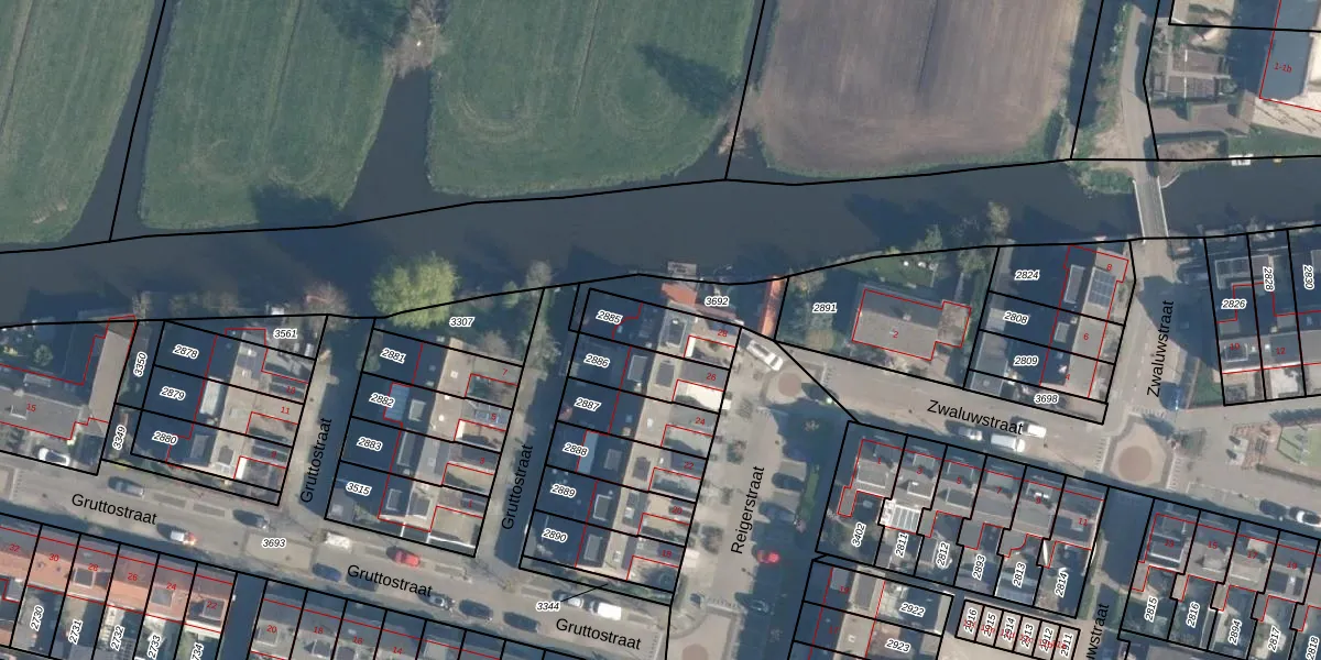 Gebruik de zoekbalk of klik op een perceel voor informatie over de adressen binnen dit perceel.