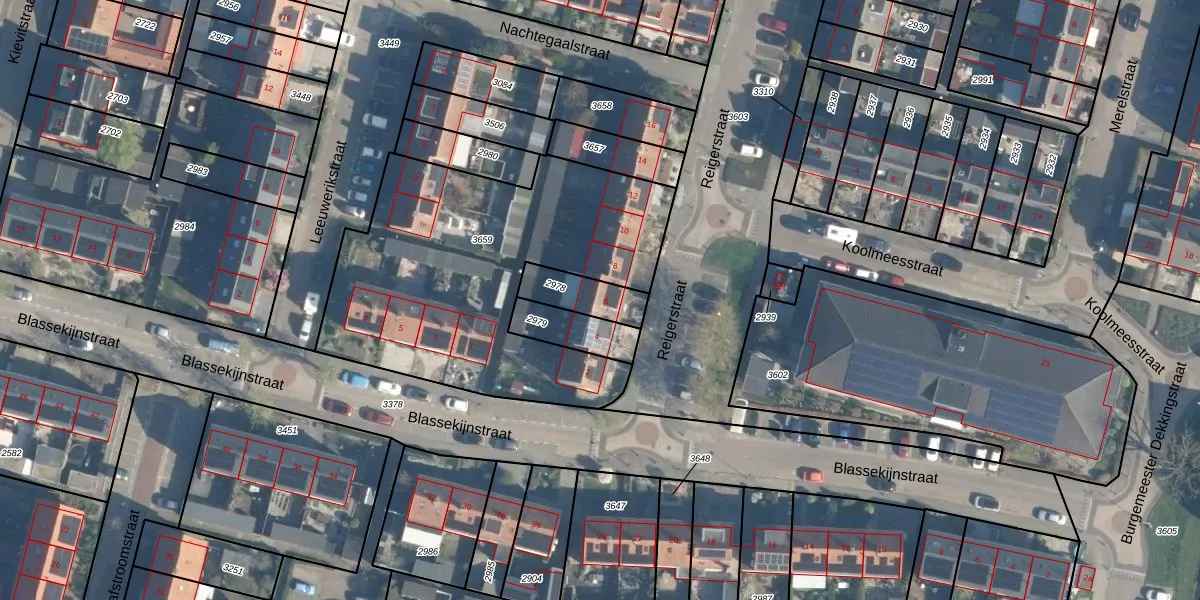 Gebruik de zoekbalk of klik op een perceel voor informatie over de adressen binnen dit perceel.