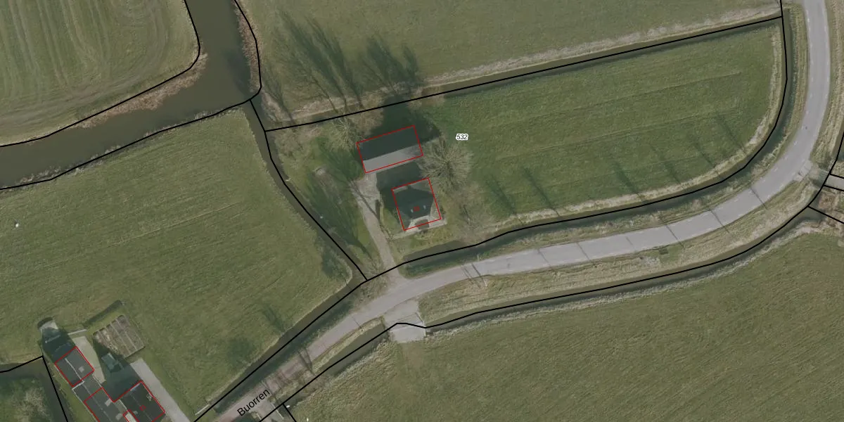 Het perceel waarop Buorren 23 staat heeft een oppervlakte van 4155 m². Dit is een zeer groot perceel. De perceeloppervlakte wordt geregistreerd door het Kadaster. Gedetailleerde informatie over de maten van dit perceel kunt u vinden in het rapport Kadastrale kaart met maatvoering van Buorren 23.