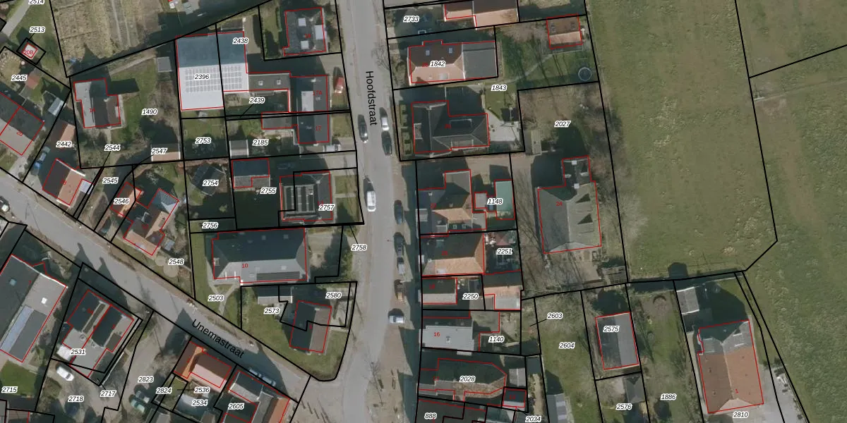 Gebruik de zoekbalk of klik op een perceel voor informatie over de adressen binnen dit perceel.