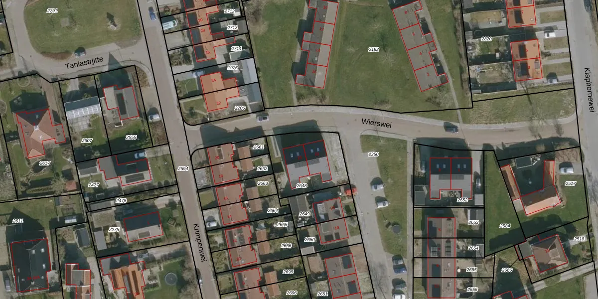 Wierswei 25 is gelegen op kadastraal perceel BJA00A2648. Deze kadastrale aanduiding is uniek en wordt gebruikt door het Kadaster om eigendomsrechten en andere zakelijke rechten vast te leggen. Het perceel maakt onderdeel uit van de kadastrale gemeente Blija.