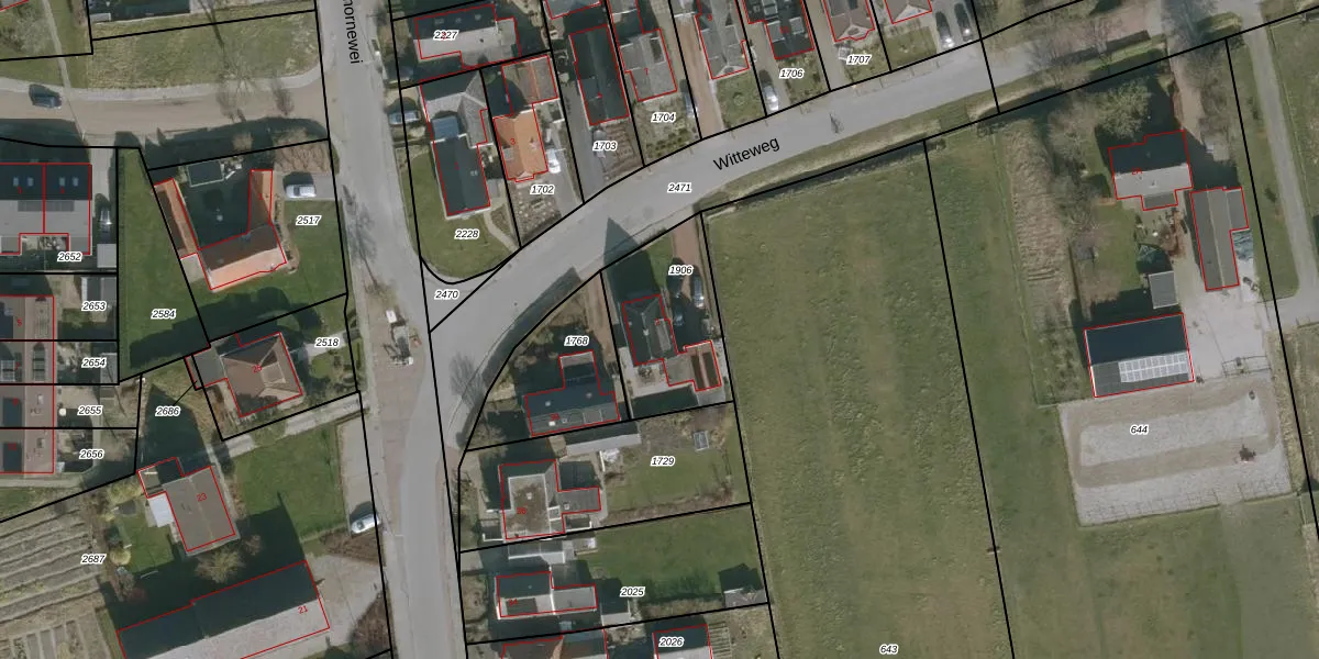 Witteweg 2 is gelegen op kadastraal perceel BJA00A1906. Deze kadastrale aanduiding is uniek en wordt gebruikt door het Kadaster om eigendomsrechten en andere zakelijke rechten vast te leggen. Het perceel maakt onderdeel uit van de kadastrale gemeente Blija.