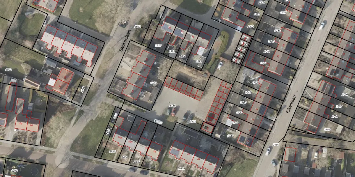 Het perceel waarop Beukenlaan 13-c staat heeft een oppervlakte van 1088 m². Dit is een zeer groot perceel. De perceeloppervlakte wordt geregistreerd door het Kadaster. Gedetailleerde informatie over de maten van dit perceel kunt u vinden in het rapport Kadastrale kaart met maatvoering van Beukenlaan 13-c.
