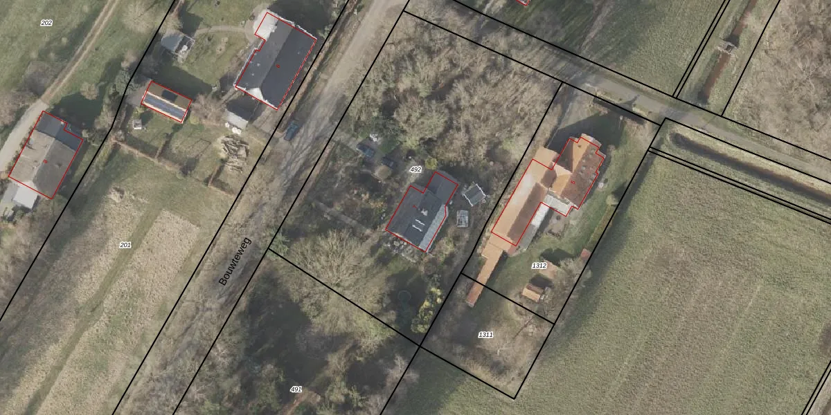 Bouwteweg 7 is gelegen op kadastraal perceel WDE03I492. Deze kadastrale aanduiding is uniek en wordt gebruikt door het Kadaster om eigendomsrechten en andere zakelijke rechten vast te leggen. Het perceel maakt onderdeel uit van de kadastrale gemeente Wedde.