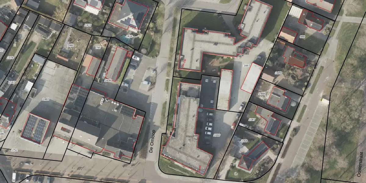 Het perceel waarop De Omloop 2-f staat heeft een oppervlakte van 1763 m². Dit is een zeer groot perceel. De perceeloppervlakte wordt geregistreerd door het Kadaster. Gedetailleerde informatie over de maten van dit perceel kunt u vinden in het rapport Kadastrale kaart met maatvoering van De Omloop 2-f.