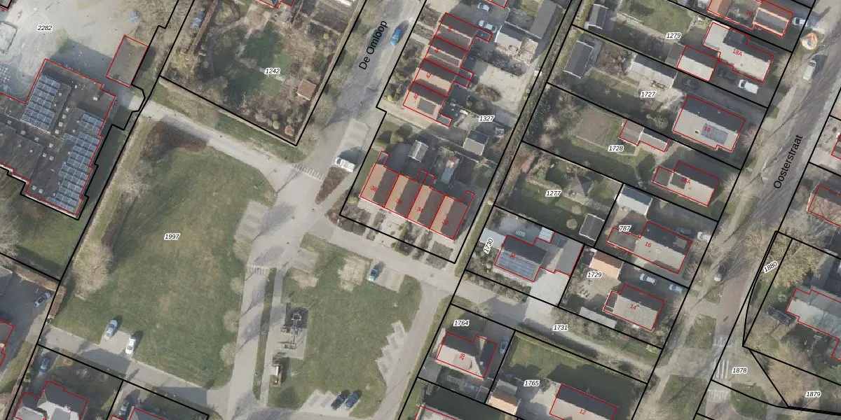 Het perceel waarop De Omloop 34 staat heeft een oppervlakte van 2519 m². Dit is een zeer groot perceel. De perceeloppervlakte wordt geregistreerd door het Kadaster. Gedetailleerde informatie over de maten van dit perceel kunt u vinden in het rapport Kadastrale kaart met maatvoering van De Omloop 34.