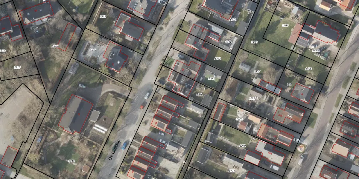 Het perceel waarop De Omloop 54 staat heeft een oppervlakte van 397 m². Dit is een groot perceel. De perceeloppervlakte wordt geregistreerd door het Kadaster. Gedetailleerde informatie over de maten van dit perceel kunt u vinden in het rapport Kadastrale kaart met maatvoering van De Omloop 54.