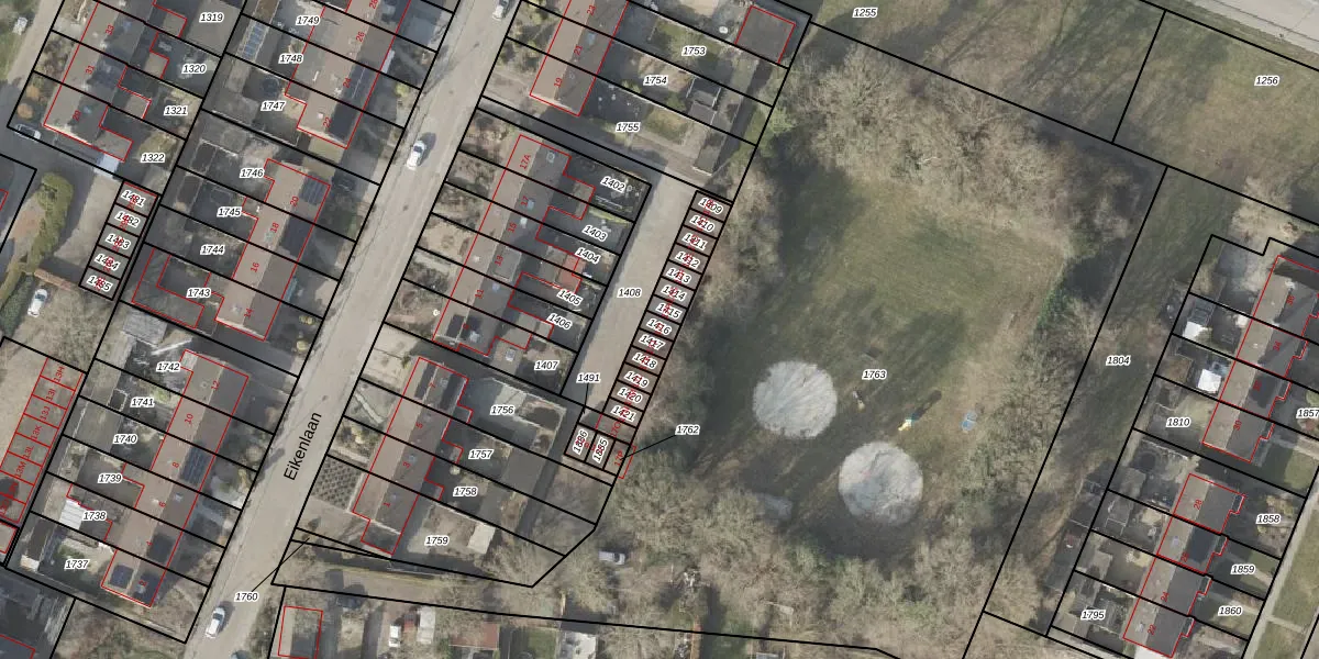 Het perceel waarop Eikenlaan 17-i staat heeft een oppervlakte van 17 m². Dit is een klein perceel. De perceeloppervlakte wordt geregistreerd door het Kadaster. Gedetailleerde informatie over de maten van dit perceel kunt u vinden in het rapport Kadastrale kaart met maatvoering van Eikenlaan 17-i.