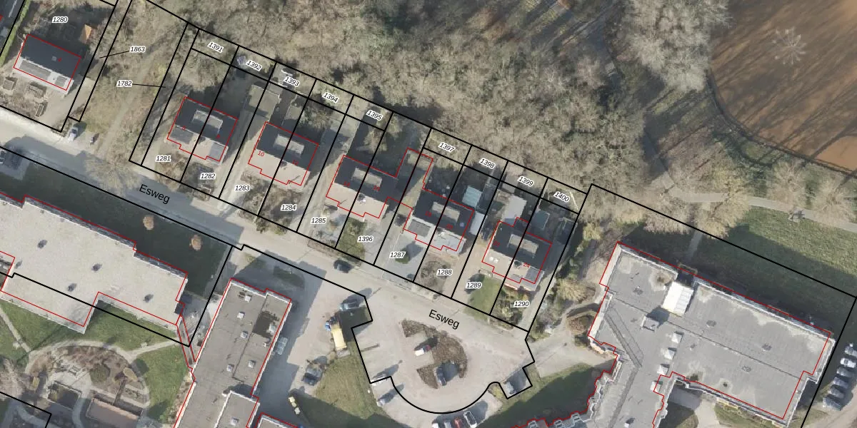 Esweg 18 is gelegen op kadastraal perceel WDE03B1287. Deze kadastrale aanduiding is uniek en wordt gebruikt door het Kadaster om eigendomsrechten en andere zakelijke rechten vast te leggen. Het perceel maakt onderdeel uit van de kadastrale gemeente Wedde.
