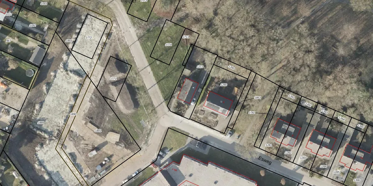 Esweg 2 is gelegen op kadastraal perceel WDE03B1213. Deze kadastrale aanduiding is uniek en wordt gebruikt door het Kadaster om eigendomsrechten en andere zakelijke rechten vast te leggen. Het perceel maakt onderdeel uit van de kadastrale gemeente Wedde.