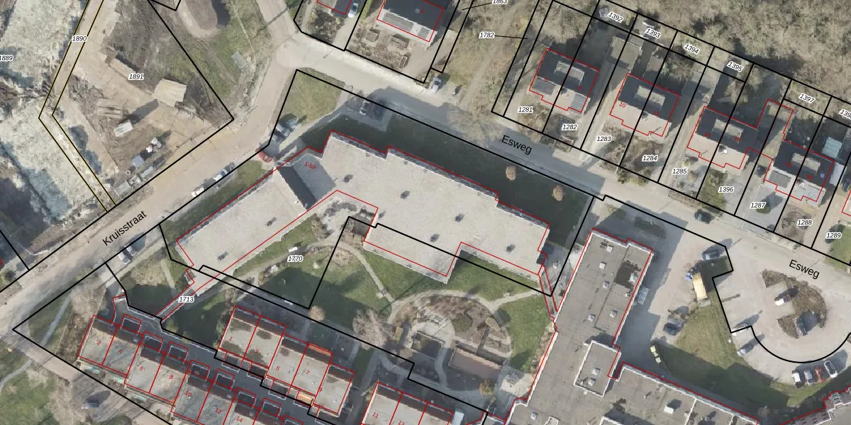 Esweg 39 is gelegen op kadastraal perceel WDE03B1770. Deze kadastrale aanduiding is uniek en wordt gebruikt door het Kadaster om eigendomsrechten en andere zakelijke rechten vast te leggen. Het perceel maakt onderdeel uit van de kadastrale gemeente Wedde.