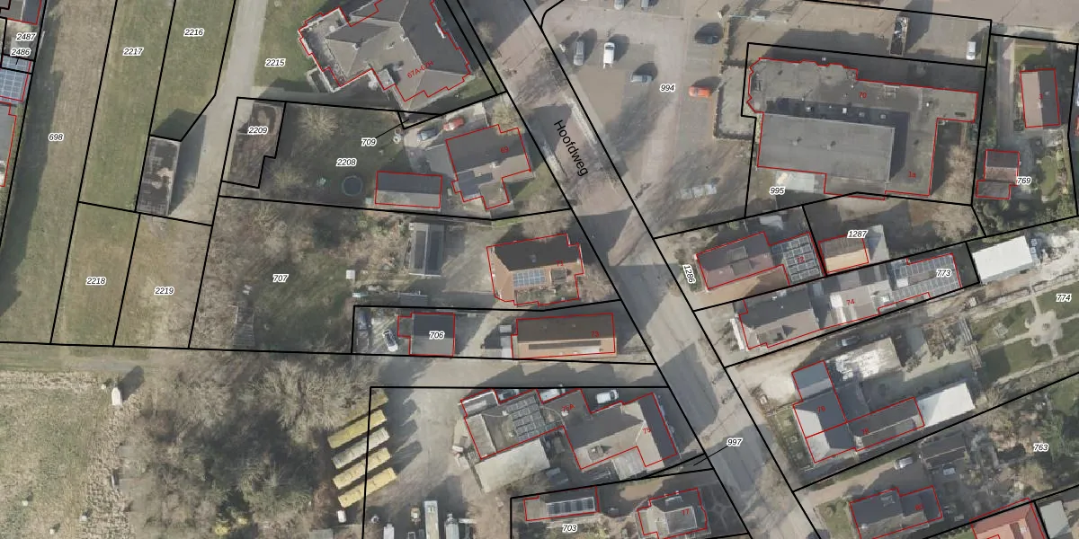 Het perceel waarop Hoofdweg 71 staat heeft een oppervlakte van 1586 m². Dit is een zeer groot perceel. De perceeloppervlakte wordt geregistreerd door het Kadaster. Gedetailleerde informatie over de maten van dit perceel kunt u vinden in het rapport Kadastrale kaart met maatvoering van Hoofdweg 71.