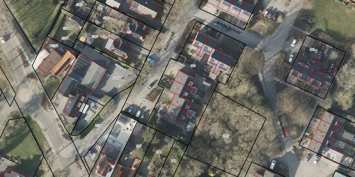Het perceel waarop Kochspad 6 staat heeft een oppervlakte van 1888 m². Dit is een zeer groot perceel. De perceeloppervlakte wordt geregistreerd door het Kadaster. Gedetailleerde informatie over de maten van dit perceel kunt u vinden in het rapport Kadastrale kaart met maatvoering van Kochspad 6.