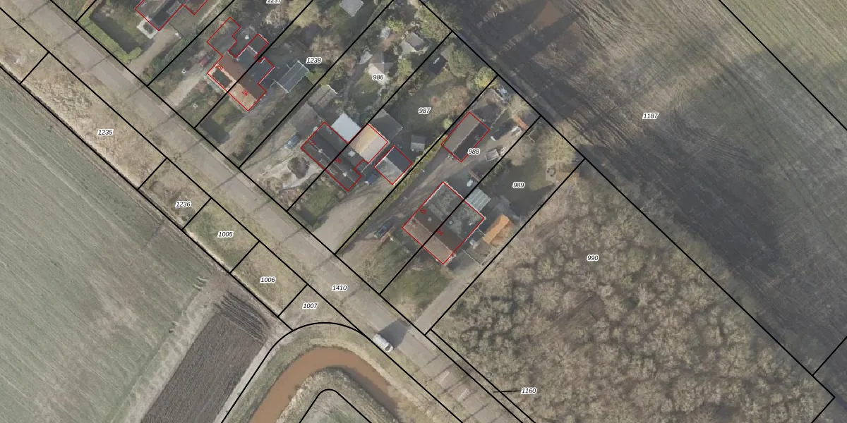 Het adres ligt op het perceel WDE03-K-988, dat zich in de kadastrale gemeente Wedde bevindt. De gemiddelde perceelgrootte in Wedde is 1,2 ha. Dit perceel is kleiner: de perceeloppervlakte bedraagt 800 m². Het kleinste perceel in de kadastrale gemeente is 1 m² groot. De grootste perceeloppervlakte is 55,5 ha. Er zijn geen andere adressen aanwezig op het perceel. In de Basisregistratie Kadaster (BRK) werden de grenzen van het perceel geregistreerd op 24-08-2010.