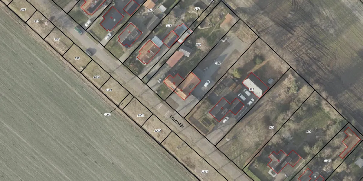 Louwdijk 34 is gelegen op kadastraal perceel WDE03K981. Deze kadastrale aanduiding is uniek en wordt gebruikt door het Kadaster om eigendomsrechten en andere zakelijke rechten vast te leggen. Het perceel maakt onderdeel uit van de kadastrale gemeente Wedde.