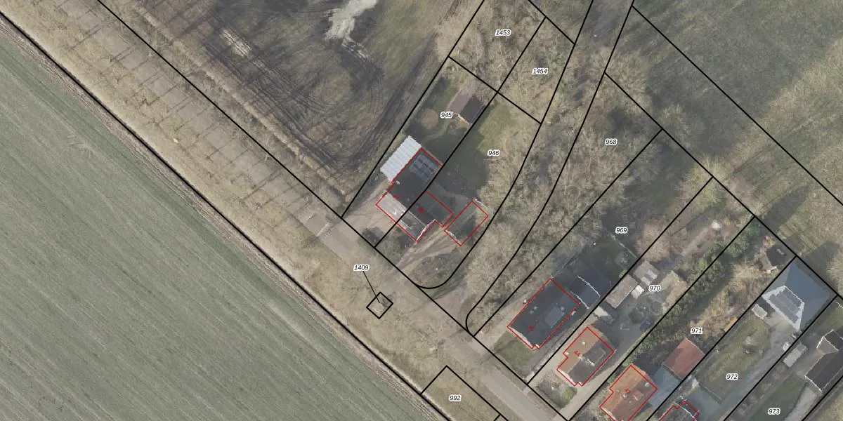 Het adres ligt op het perceel WDE03-K-946, dat zich in de kadastrale gemeente Wedde bevindt. De gemiddelde perceelgrootte in Wedde is 1,2 ha. Dit perceel is kleiner: de perceeloppervlakte bedraagt 780 m². Het kleinste perceel in de kadastrale gemeente is 1 m² groot. De grootste perceeloppervlakte is 55,5 ha. Dit is het enige adres dat aanwezig is op het perceel. De huidige grenzen van het perceel zijn digitaal in de Basisregistratie Kadaster (BRK) geregistreerd op 24-08-2010.