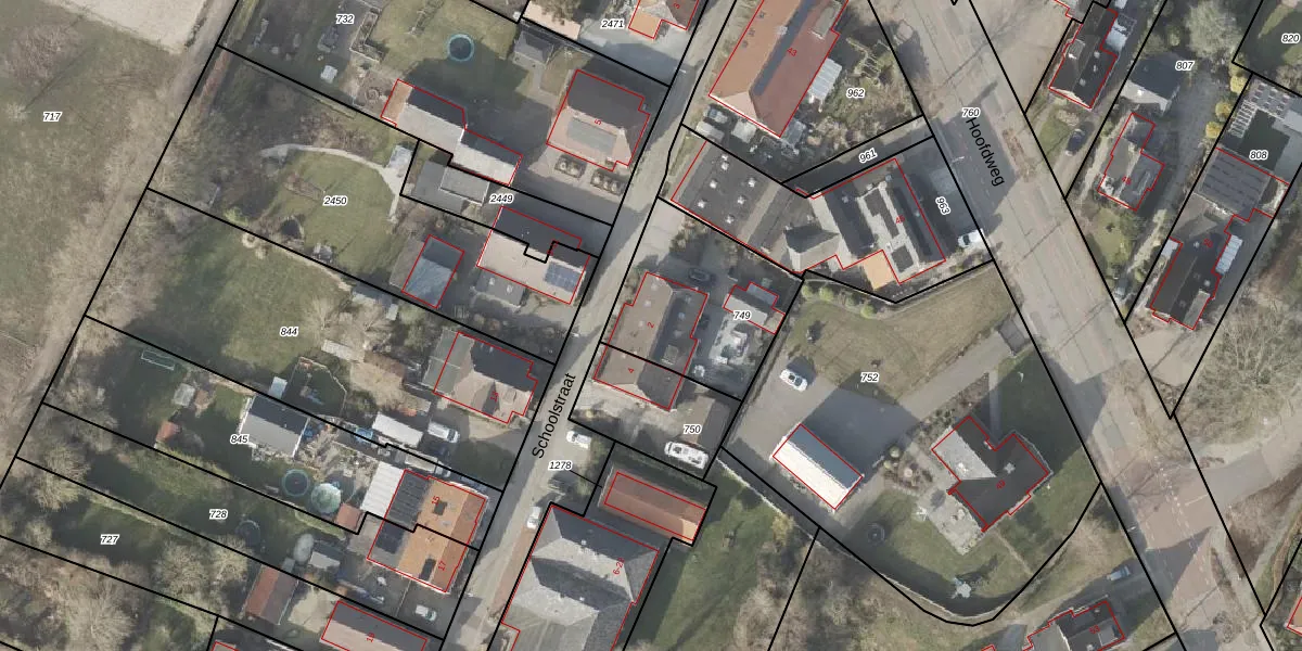 Het perceel waarop Schoolstraat 2 staat heeft een oppervlakte van 547 m². Dit is een groot perceel. De perceeloppervlakte wordt geregistreerd door het Kadaster. Gedetailleerde informatie over de maten van dit perceel kunt u vinden in het rapport Kadastrale kaart met maatvoering van Schoolstraat 2.