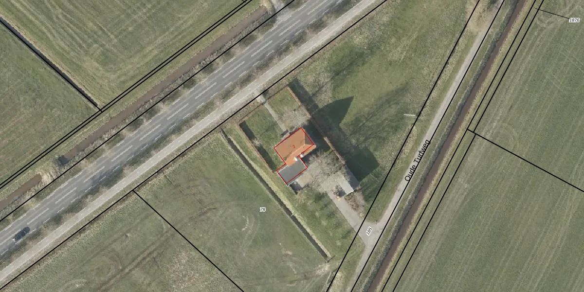 Turfweg 2 is gelegen op kadastraal perceel WDE03I78. Deze kadastrale aanduiding is uniek en wordt gebruikt door het Kadaster om eigendomsrechten en andere zakelijke rechten vast te leggen. Het perceel maakt onderdeel uit van de kadastrale gemeente Wedde.