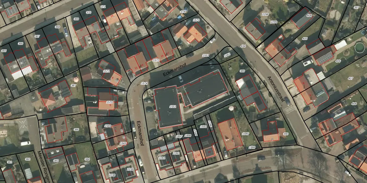 Eckmanshof 14 is gelegen op kadastraal perceel WSM02E1551. Deze kadastrale aanduiding is uniek en wordt gebruikt door het Kadaster om eigendomsrechten en andere zakelijke rechten vast te leggen. Het perceel maakt onderdeel uit van de kadastrale gemeente Wanssum.