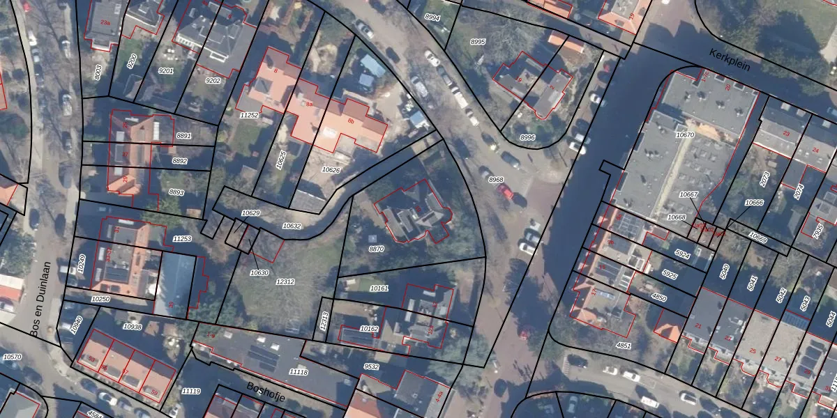 Gebruik de zoekbalk of klik op een perceel voor informatie over de adressen binnen dit perceel.
