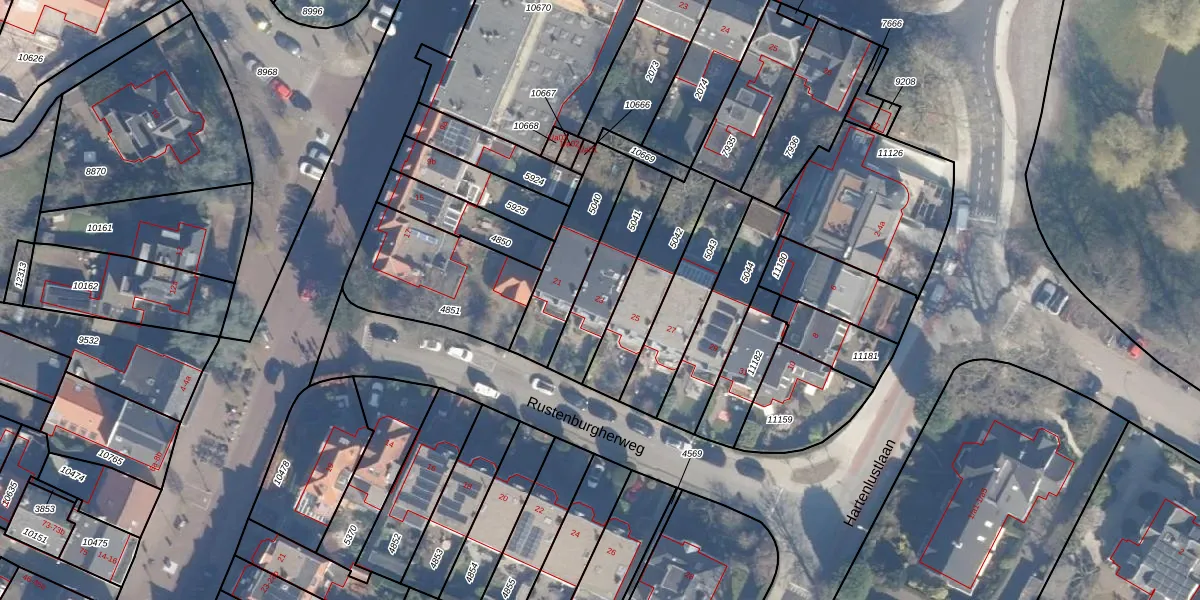 Rustenburgherweg 23 is gelegen op kadastraal perceel BMD00A5041. Deze kadastrale aanduiding is uniek en wordt gebruikt door het Kadaster om eigendomsrechten en andere zakelijke rechten vast te leggen. Het perceel maakt onderdeel uit van de kadastrale gemeente Bloemendaal.